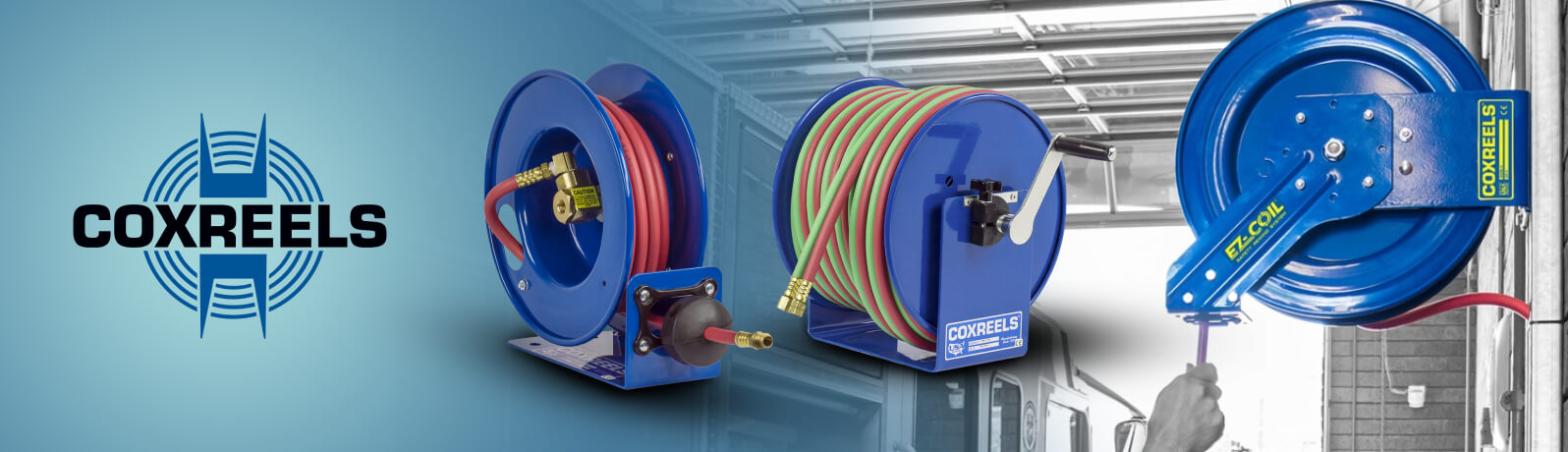 - EZ-Coil® reels - the system works unidirectionally without any increase to the amount of resistance when pulling out the hose, cable, or cord.