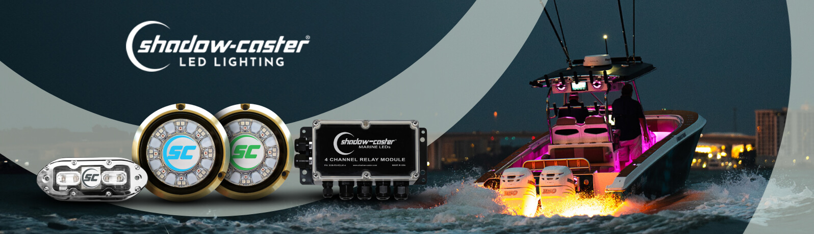On our website, choose from Shadow-Caster underwater lights, above water lights, power distribution products, etc. Shadow-Caster above water lights are suitable for all boat types, just choose the best solution for you. Underwater boat lights will improve safety and visibility. In addition, a boat with underwater lights looks great.