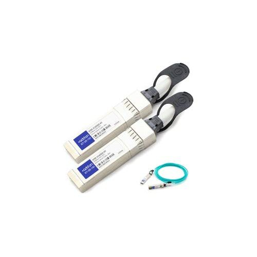 This is an Avago AFBR-2CAR30Z compatible 10GBase-AOC SFP+ to SFP+ active optical cable that operates over multi-mode fiber with a maximum reach of 30.0m (98.4ft). At a wavelength of 850nm, it has been programmed, uniquely serialized, and data-traffic and application tested to ensure it is 100% compliant and functional. This active optical cable is TAA (Trade Agreements Act) compliant, and is built to comply with MSA (Multi-Source Agreement) standards.
