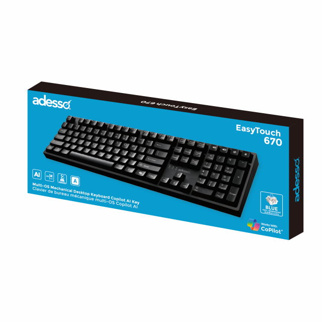 The EasyTouch 670 elevates productivity with its tactile feel, convenience, and functional features for any desktop. Featuring durable mechanical key switches that offer a smooth, linear response, large key prints, multimedia shortcut keys, and a dedicated CoPilot AI key for quick access to Microsoft CoPilot AI, it is the perfect addition to any workstation, home office, or enterprise ecosystem.