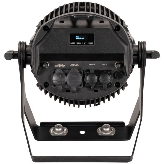 The UV PAR 100IP is a robust IP65-rated ultraviolet LED fixture that features a 100-Watt C.O.B. (Chip On Board) UV LED. It provides a massive 120-degree beam angle and operates in the 390-399nm wavelength range, delivering vibrant and consistent UV lighting.