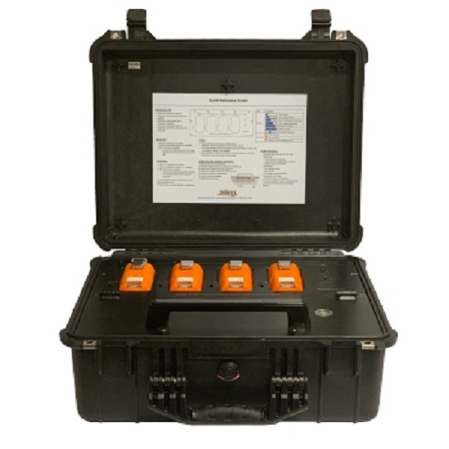The AimSafety Bump/Calibration Station for PM100 is an all-in-one testing/calibration station for PM100 portable multi-gas monitors. The Bump-Calibration Station utilizes the IR communication of the PM100 monitors to perform testing and calibration by pressing only a single button. Operation of the station only requires the use of two buttons. Learning to use the station takes only minutes. It is designed to quickly perform bump tests/calibration for multiple PM100 monitors. It can test/calibrate up to four detectors simultaneously, which reduces the testing time and gas usage. The Bump-Calibration Station will work with PM100 multi-gas personal monitors. The station includes a calibration certificate feature for retrieving and printing the certificate using a computer connected to either the PM Link or using the included thumb drive.