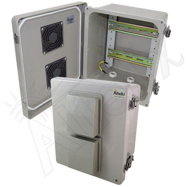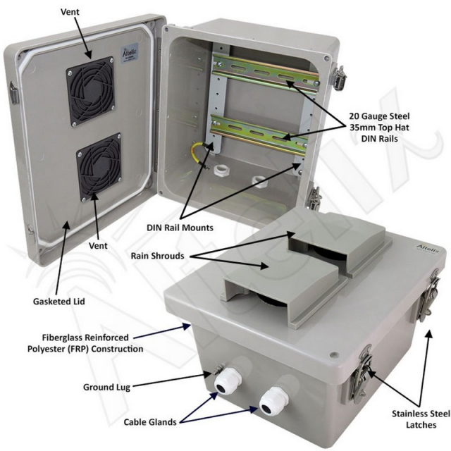 Altelix, NF100806V-DIN, 10" x 8" x 6" Vented Industrial DIN Rail Fiberglass Enclosure