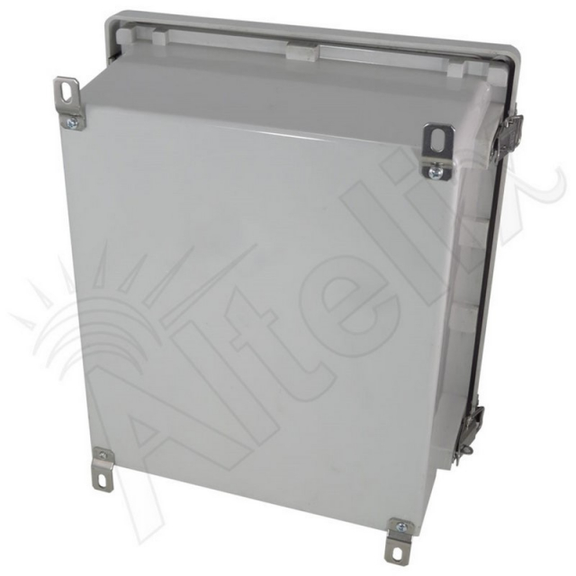 This rugged JIC style NEMA box is molded from durable UV stable and corrosion-resistant fiberglass reinforced polyester (FRP) with a UL94-5V flame rating. The FRP material is dent-proof, non-conductive, and RF transparent for compatibility with wireless equipment. It can be easily drilled and modified by the installer as needed. It features a gasketed door with stainless steel continuous hinge and stainless steel quick-release latches with padlock hasps. The generous size of this enclosure accommodates a wide range of equipment.