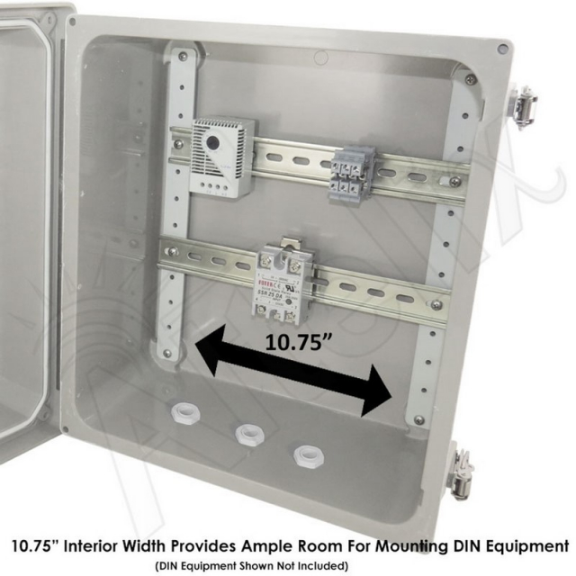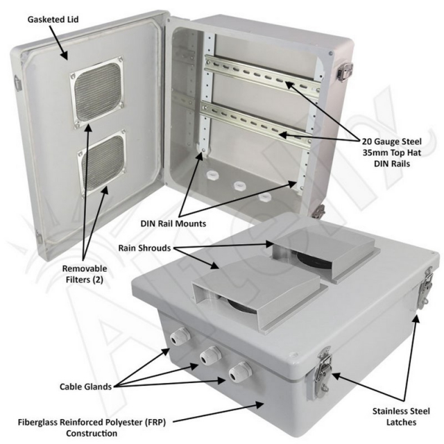 Altelix, NF141206V-DIN, 14" x 12" x 6" Vented Industrial DIN Rail Fiberglass Enclosure Fiberglass