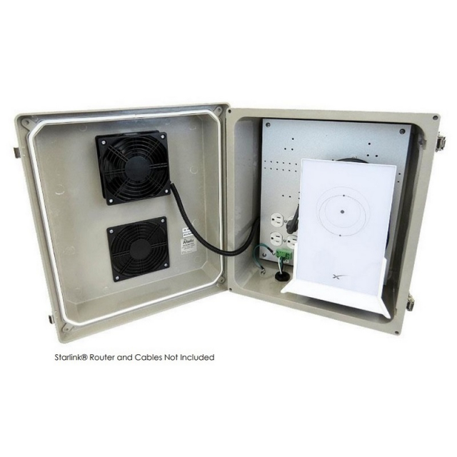 Altelix, NF14VFHA1C-STK1, Fiberglass Weatherproof Enclosure for Starlink WiFi Router with Heater, Cooling Fan, 120 VAC Outlets and Power Cord