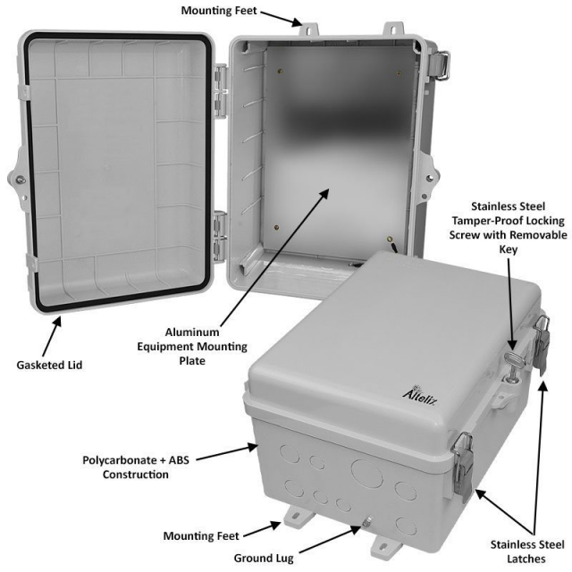 The Altelix NP120907P NEMA 4X enclosure is ideal for protecting devices from harsh environments and tampering. With the generous size of this enclosure the NP120907P can accommodate a wide range of equipment.