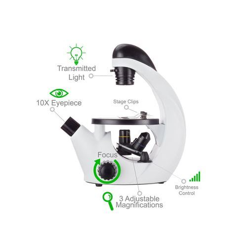 - The inverted design lets you view a wider variety of specimens than conventional, upright microscopes, including standard Slide, liquids, crystals, and much more!