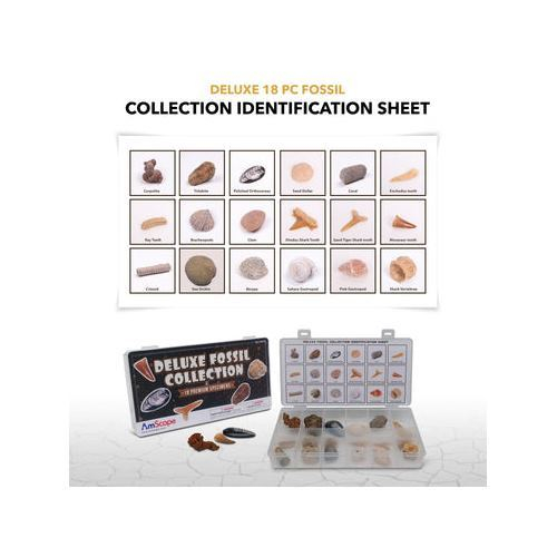 - Kit includes deluxe 18-piece fossil collection including fossilized specimens such as trilobites, shark and ray teeth, coral and many more!