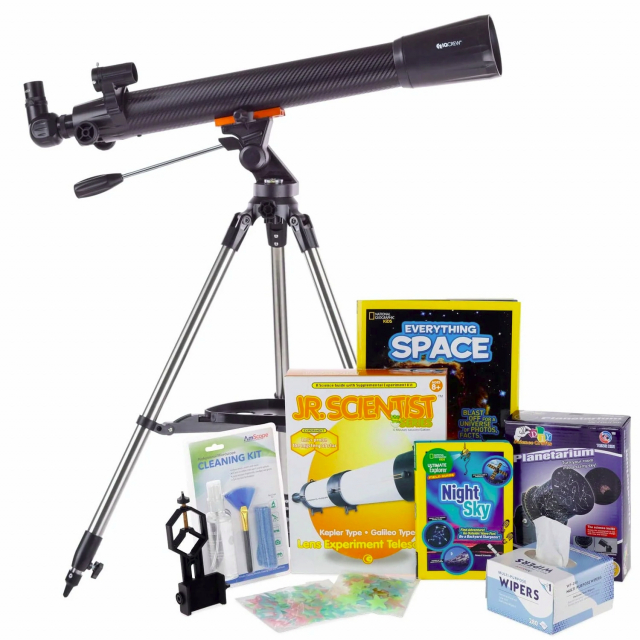 AmScope, TKVB-70700-TLDIY-SSKR, Kid's Telescope Star Seeker Series featuring 35X-350X 700x70mm Kid's Telescope, Build & Learn Telescope Activity Kit, and more