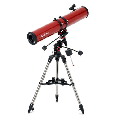 AmScope, TLS-PEQ-114900, Reflector EQ Telescope with Equatorial Mount, 114mm Aperture, 900mm Focal Length, Stainless Steel Tripod and Red Dot Finder