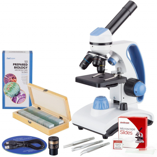 Designed for students to learn science for years of continued observations, it has full optical glass elements, a metal framework, two eyepieces (10X and 25X), a 360-degree rotatable monocular head, and coarse & fine focusing. The light sources use either an outlet (adapter included) or three AA batteries (included). This microscope is perfect for academics in home school for students in elementary to high school.