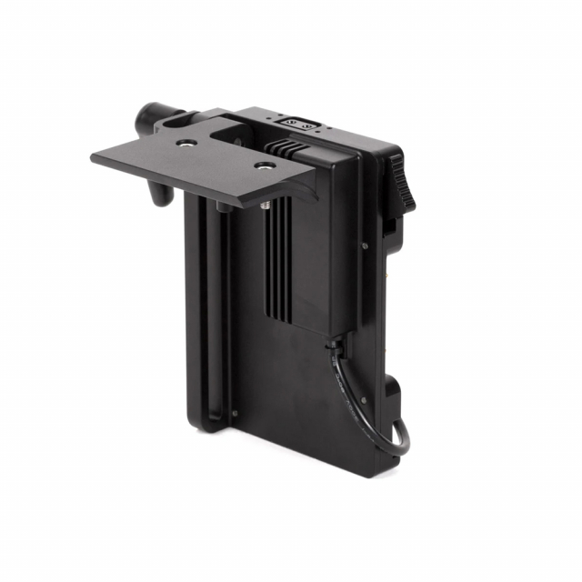 The custom-designed aluminum mount weighs just 0.8lbs and attaches seamlessly into the Extension Unit Connector on the top of the camera providing a secure platform to mount a Gold Mount battery directly to the camera with a streamlined profile that fits perfectly into a camera case for compact packing.