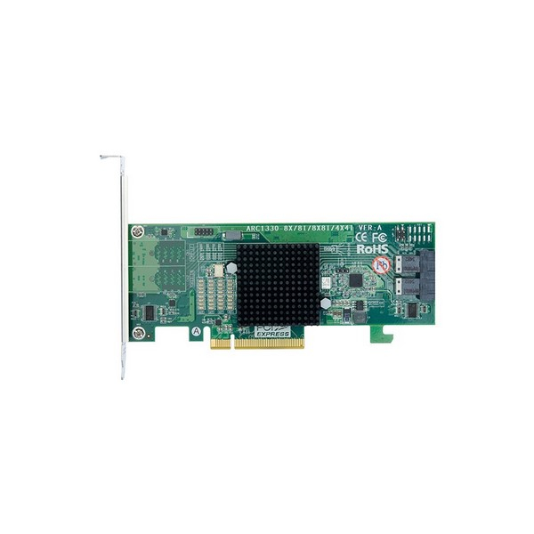 The ARC-1330 series is a low profile host adapter. It brings the fastest accessible connections to SAS data transfer rates of 12, 6, and 3 Gb/s per lane and SATA data transfer rates of 6 and 3Gb/s per lane interface storage on any computer, workstation and server with PCI Express 3.0 interface. The adapters are backwards compatible with existing and future RAID, and expander solutions. It provides maximum bandwidth and I/O connectivity for high-end server-based storage systems with internal storage or when connecting to large-scale storage enclosures.