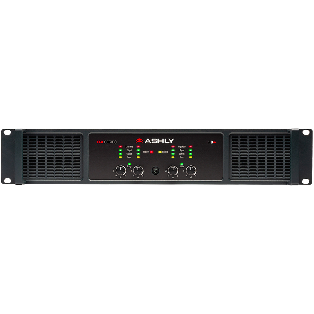 The CA Series is the next generation of Class D amplifiers. Ashly's proprietary D-MAX technology pushes amplifier efficiency to heights and provides unmatched operational stability and performance in a commercial amplifier. By using ultra-fast, lossless Silicone-Carbide switches, a designed high-speed power supply, and Ashly's Dynamic Power Factor Correction, CA Series amps can run full-tilt without even breaking a sweat and are stable down to .02 Ohms. Ashly's SailFlow directed cooling system further helps to keep everything run cool. The Ashly Audio CA-1.04 delivers 1,000W x 4 at 2/4 Ohms and can even drive 70V or 100V loads. A compliment of front-panel Input level controls and LED indicators for amp status, plus Balanced Euroblock & XLR Combo input connectors, VCA control ports, switchable HPF & Limiter on each channel, Standby port and front panel lockout, gives the CA the flexibility to meet almost any system requirement. The CAs high-power, Low Z stability makes it ideal for large live performance speakers, even subwoofers.