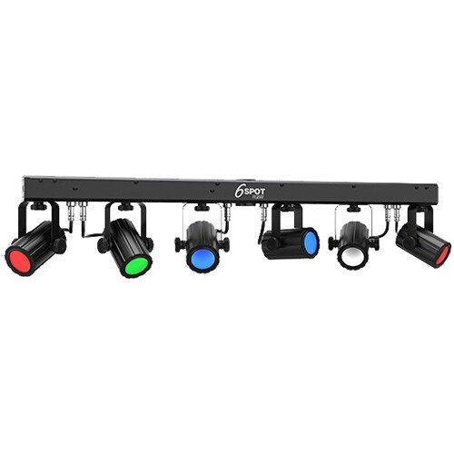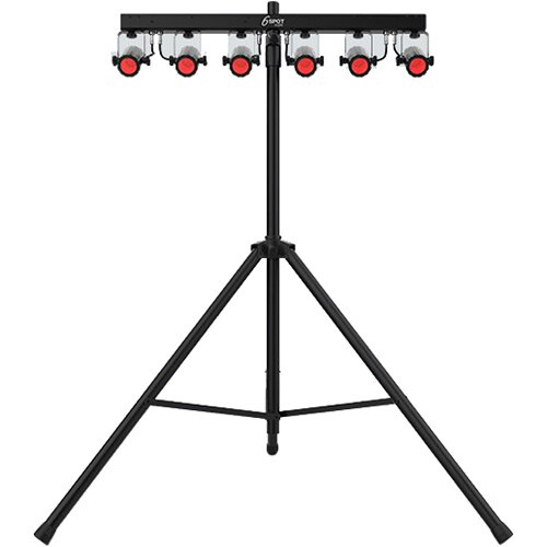 It's an LED powered, color-changer system complete with its own travel bag. Six individually controllable and positionable heads each contain a high-power tri-color LED that creates 7 popular colors. The unit can be controlled via DMX or by running automatic or sound-activated programs. The fixture easily slides onto most standard tripod stands or can be mounted onto truss.