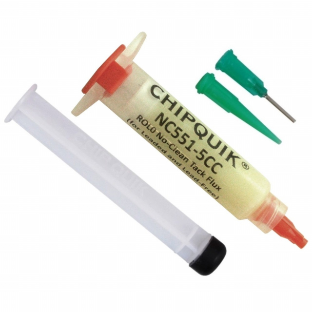 Chip Quik, NC551-5CC, No-Clean Tack Flux in 5cc/5g Syringe w/Plunger and Tips