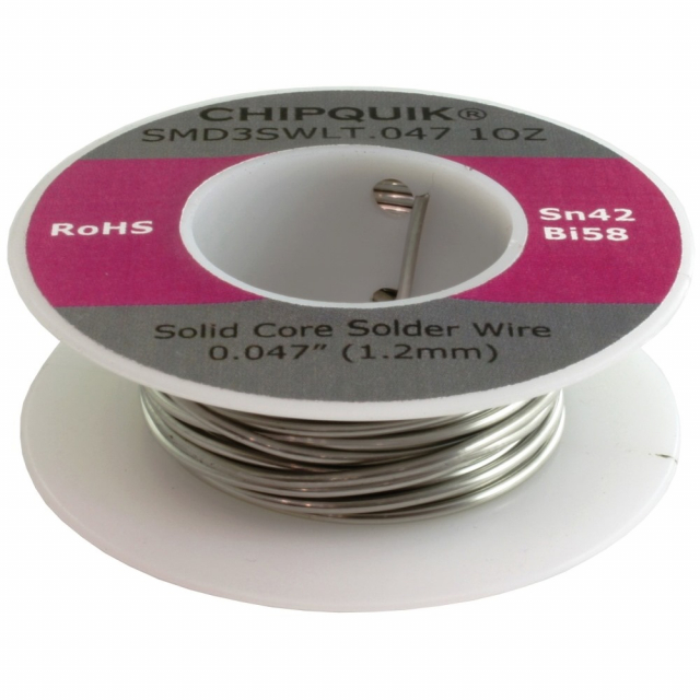 Chip Quik, SMD3SWLT.047 1OZ, Sn42/Bi58 .047" Solder Wire 1oz Spool, Solid Core