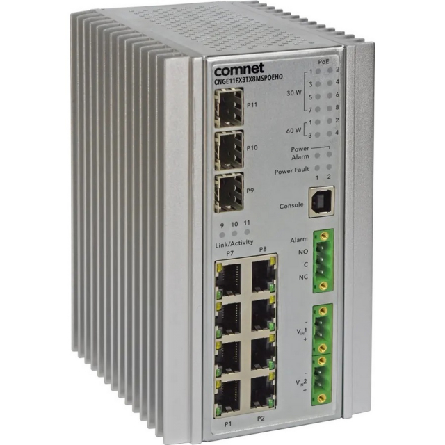 Comnet, CNGE11FX3TX8MSPOEHO, Hardened Managed L2+ Dual .at PoE Switch 3 SFP 8 RJ45