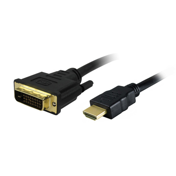 Comprehensive Standard Series HDMI to DVI cables connect DVI devices to HDMI devices such as DVD, satellite boxes, projectors, LCD and plasma HDTVs. This DVI to HDMI cable provides an interface between any DVI and HDMI-enabled source, such as a set-top box, DVD player, and A/V receiver, video monitor, and projector for video only. HDMI supports standard, enhanced, or high-definition video. It transmits all ATSC HDTV standards with bandwidth to spare to accommodate future enhancements and requirements.Standard Series HDMI to DVI cables utilizes a 24k Gold HDMI connector on one end and one DVI-D male connector on the other. 28 awg construction allows for excellent performance. RoHS certified.