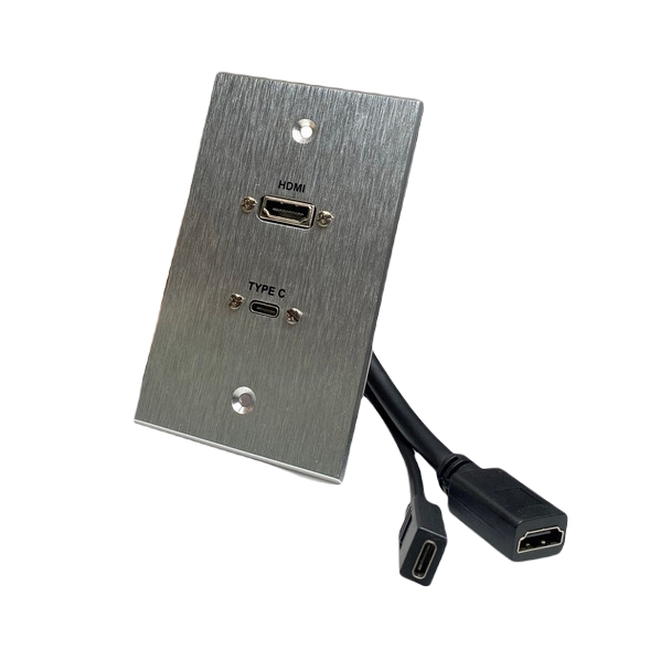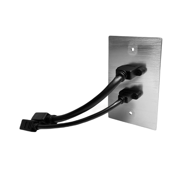 Constructed of high-quality brushed anodized aluminum, the wall plate is durable and long-lasting for commercial usage including offices, meeting spaces, classrooms, hotels, houses of worship, and other spaces requiring HDMI room connectivity.