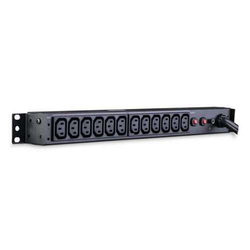It, a 12-outlet (rear) rackmount basic power distribution unit (PDU), provides 200V/230V 30A output. It distributes power to 12 IEC-320 C13 receptacles from a single NEMA L6-30P twist lock plug with unfiltered electrical pass-through. Designed for datacenters and other electrically demanding applications, It has rugged, industrial-grade metal housing and a 10-foot AC power cord. It can be mounted either horizontally or vertically, has a cord retention tray.