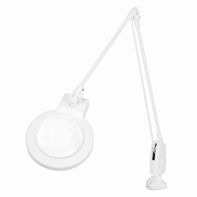 Dazor, L1408-5-WH, Circline LED Magnifier, 5-Diopter, 2.25X, Classic Arm, 43" Reach, Clamp Base - White