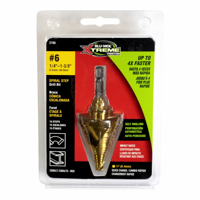 Save 3% each on BLU-MOL Xtreme E0102785 1/4" to 1-3/8" 6 Spiral Step Drill when you purchase 5 or more
