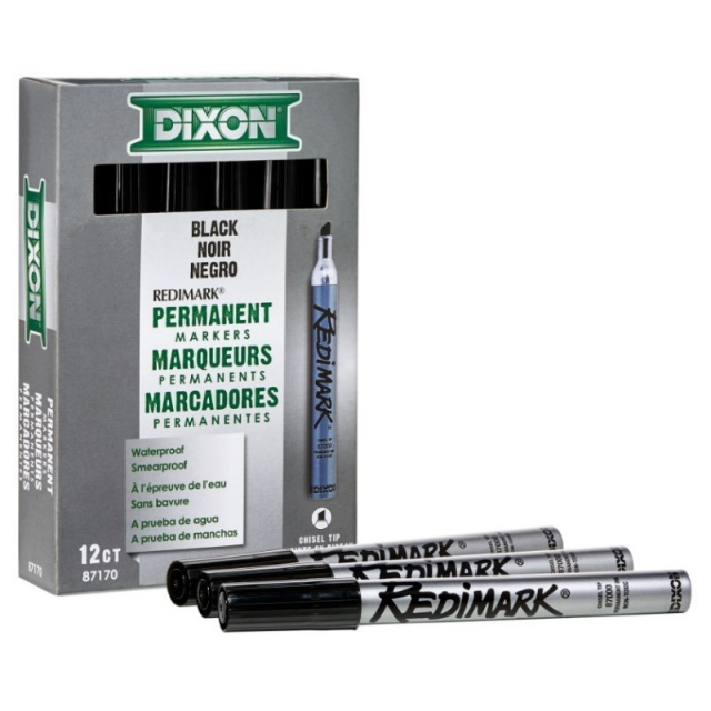 RediMark Permanent Markers are the ultimate choice for superior durability. The 6-inch metal barrel is perfect for tough work environments. These sturdy markers won't crack, melt, or break. They feature a leak-proof, seamless metal body and a heavy-duty chisel felt-tip with anchored nib construction. The permanent, alcohol based, fast drying ink is fade resistant on glass, plastic, metals, wood, cellophane, paper and virtually any porous and non-porous surface. More than a writing and art products company, Dixon Ticonderoga empowers people to take conscious and subliminal thoughts, facts, ideas and dreams, and preserve them using tools that are simply extensions of themselves.