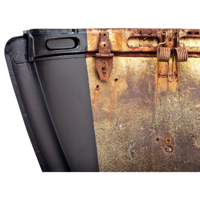 Stop rust in its tracks! Rust Encapsulator is the easiest way to stop and prevent rust and corrosion from spreading. Simply wire brush any loose rust, wipe with PRE painting prep to clean the surface and apply. Eastwood Rust Encapsulator has proven to be superior in UV resistance, preventing rust creep, and overall durability. Eastwood Rust Encapsulator has been tested by an independent lab to be one of the most effective rust-preventive products yet. Rust Encapsulator is a great primer for floor pans and other underbody parts. It fills tiny pin-holes and surface irregularities, and is compatible with lacquer, enamel and urethane topcoats (including Eastwood Chassis Black). For the absolute ultimate rust remedy, first brush or spray-on Eastwood Rust Converter, then prime with Rust Encapsulator. One 15-oz. aerosol covers about 10 sq. ft., and contains no isocyanates. One Gallon covers about 160 Sq Ft. Heat-resistant up to 400°F. Made in the USA.