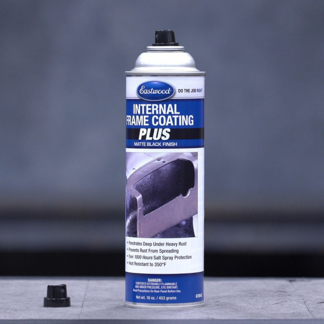 Eastwood Internal Frame Coating Plus is a high performance, moisture-cured urethane coating that encapsulates and stops rust from spreading. Internal Frame Coating Plus does not require a top coat except when exposed to direct sunlight. Internal Frame Coating Plus may be top coated with most high quality coatings. Apply over bare metal surfaces or rusted areas. Internal Frame Coating Plus is ideal for any type of rusted metal surface and can withstand temperatures up to 350 degrees F. Packaged in a large 16 ounce aerosol spray can.