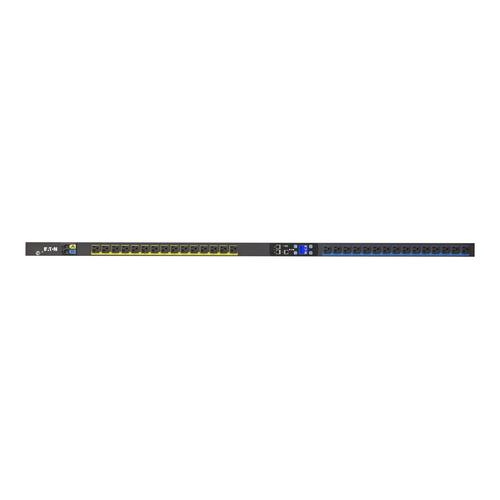 Eaton Metered Input ePDUs provide remote monitoring of the current draw of individual sections via network communication. This capability, combined with state-of-the-art software allows you to aggregate the information from many ePDUs in one location. A local display is also available for phase balancing and for easy start-up and provisioning of servers. New ePDU G3 Metered Input models feature best-in-class technologies, including billing grade accuracy, an advanced LCD pixel display, a hot-swap meter and the ability to daisy chain four ePDUs to share the same network connection and IP address.