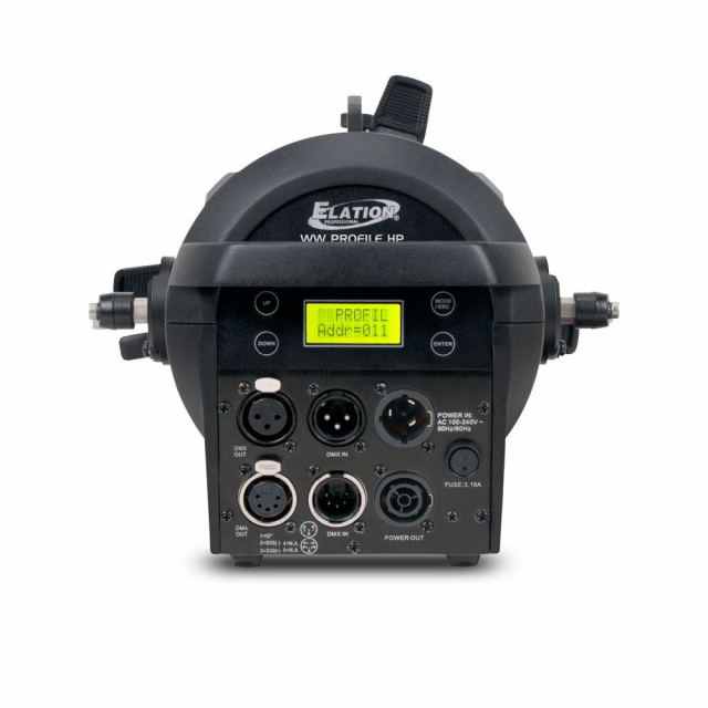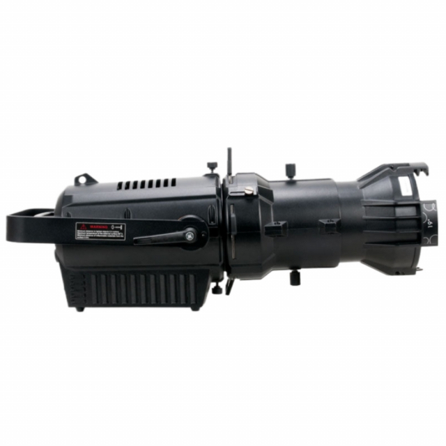 The WW Profile HP™ ellipsoidal features a High Powered 130W Warm White >91CRI 3,000K LED engine producing 10,000+ total lumens, 19°, 26°, 36°, and 50° interchangeable lens options (sold separately), (4) blade manual framing shutters, manual focus, supports B size metal HT transparency gobos, DMX controlled electronic strobe, and variable dimming curve modes, adjustable refresh frequency and gamma brightness for flicker free operation for TV and FILM, 3/5pin DMX and IP65 Locking Power Cable in/out connections, (4) button LCD control display panel, an integrated rigging yoke, quiet fan cooling, and a multi-voltage universal auto switching power supply (100-240v).
