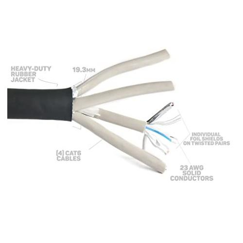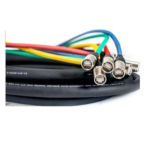 Elite Core, SUPERCAT6-QUAD-FAN-200, Shielded Quad CAT6 Cable with 2' Fantails and Tactical Locking Ethernet Connectors