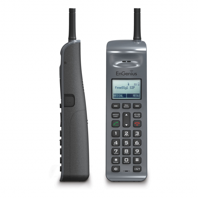 The FreeStyl SIP provides long-range coverage in a carry-away, sleek, office-style cordless phone. Expandible to 10 handset and 10 SIP accounts, this system avoid adding demands to the Wi-Fi network by utilizing 900 MHz frequency.
