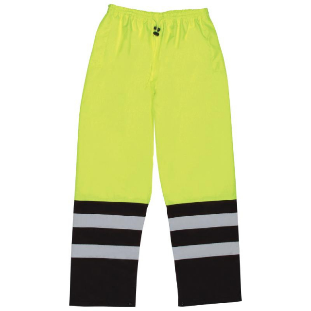 ERB Safety, WEL62108LBLG, S849 Class E Rain Pants with Drawstring Waist and Black Bottom, Hi Viz Lime, LG