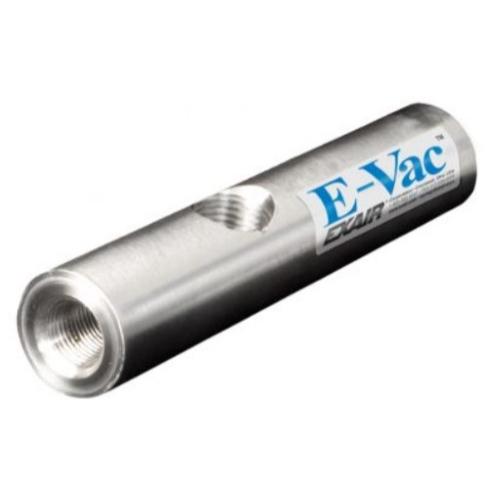 Low vacuum units up to 21" Hg (91 kPa) with vacuum flows up to 18.5 SCFM (524 SLPM) are typically used for porous materials such as cardboard, textiles, or delicate materials. There are 7 In-Line models that vary by flow and vacuum level. EXAIR's In-Line E-Vacs are engineered to produce instantaneous vacuum at the point of use. These single-stage, cylindrical units are compact and easy to mount. They can be held in place by threading them directly onto a compressed air line or with the use of a mounting clip.