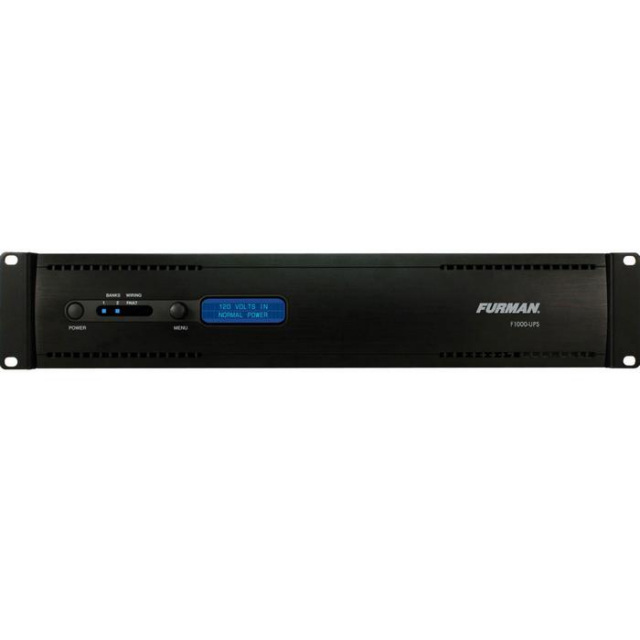 2RU uninterruptible power supply - battery backup / power conditioner. AVR, RS-232 & USB interface; no fan. The Furman F1000-UPS: battery backup is designed exclusively for audio/video professionals and home theater aficionados. For decades, traditional audio/video components were simple analog devices designed to easily weather power outages of well over two seconds. Later, as computer and microprocessor based components gained in popularity, their extraordinary sensitivity to even a fraction of a second’s power loss was managed with traditional UPS (uninterruptible power supply) technology. Unfortunately, these units were solely designed for the I.T. professional. Though they included many technologies and features appropriate to that application, they fell short for premium audio/video components. Though many of these manufacturers later recognized the ever emerging professional audio/video, broadcast, and home theater market, their lack of experience led merely to a re-tooled chassis. These hastily produced UPS devices lacked the technologies necessary to truly optimize protection, performance, and control for today’s audio video components. The Furman F1000-UPS more than fills this void, and offers your system unparalleled battery back-up technology, created from the ground up to meet the exacting demands of the world’s most sensitive audio, video and control systems! Typical UPS systems feature antiquated surge suppression technologies that can cause as much damage and annoying lock-ups as they attempt to prevent. Only Furman offers battery back-up with our road-proven SMP non-sacrificial, zero ground contamination surge suppression technology and EVS Extreme Voltage Shutdown. After all, the most robust battery can not function if the accompanying circuits are damaged. With Furman’s F1000-UPS, you can expect years of trouble free operation. Though many control devices are relatively immune to moderate levels of AC line noise, today’s more sensitive devices (such as DLP projectors and line-level signal processors) certainly are not. High-definition technologies have pushed resolution to levels so extreme that virtually any AC noise capable of coupling with your system’s signal will distort, mask, or destroy the performance advantages we all strive so hard to capture and reproduce. Once again, the F1000-UPS is different. While other UPS devices feature AC line filters suitable for a I.T. closet, only Furman employs our exclusive Linear Filtering Technology (LiFT). This advanced noise filtering technology assures that today’s ultra-wide dynamic range is maintained as it must be – pristine. Remember, less AC noise equals greater content, greater resolution, and higher definition. Audio/video systems can vary greatly in their size and components, and as such, flexibility is needed in determining how a battery backup solution should function under different circumstances. Because of this, Furman has provided open source RS-232 control over two independent AC outlet banks, with a wide range of control features to interface with an existing automation solution. Dual programmable IR control allows the unit to send a shut down command to remote components – no more expensive projector bulbs to replace in the event of a blackout.