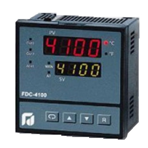 Future Design Controls FDC-4100 series redefines the standard for 1/4 DIN temperature controllers. Fast input scan rates ( 5 per second ), 18 bit input resolution and 15 bit output resolution as well as fuzzy modified PID control provide not only the highest accuracy, but temperature control minimizing over/under shoot while maintaining fast process response. The "100" series can be configured with up to 3 control outputs (2 PID fuzzy + alarm). A fourth output can be configured for RS232/485 Modbus or PV analog retransmission. The 4100 series can also be equipped with an isolated transmitter power supply when the second control output is not required. Standard software functionality includes Fuzzy Logic + PID, soft start ramp, Lock out protection, bumpless transfer, user defined menu operation, timer function, and more. With isolated inputs/outputs, UL/cUL and CE, this series is the clear choice for temperature control applications.