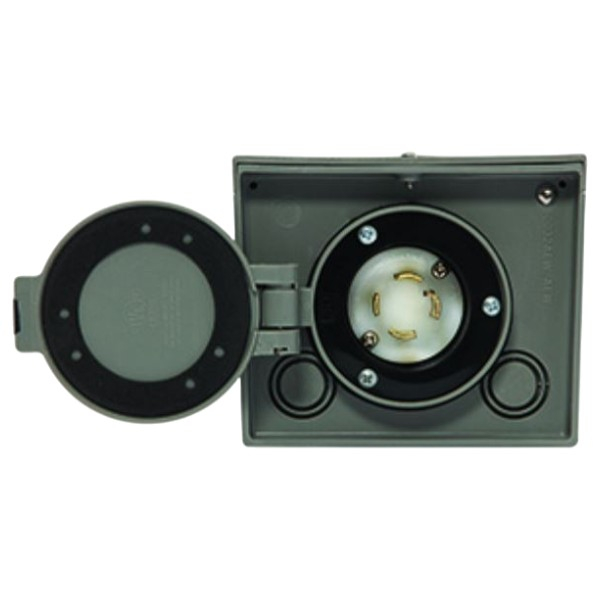 Generac, 6340, 30 Amp Power Inlet Box, 125/250V, Raintight Resin, NEMA L14-30 with Spring-Loaded Flip Lid