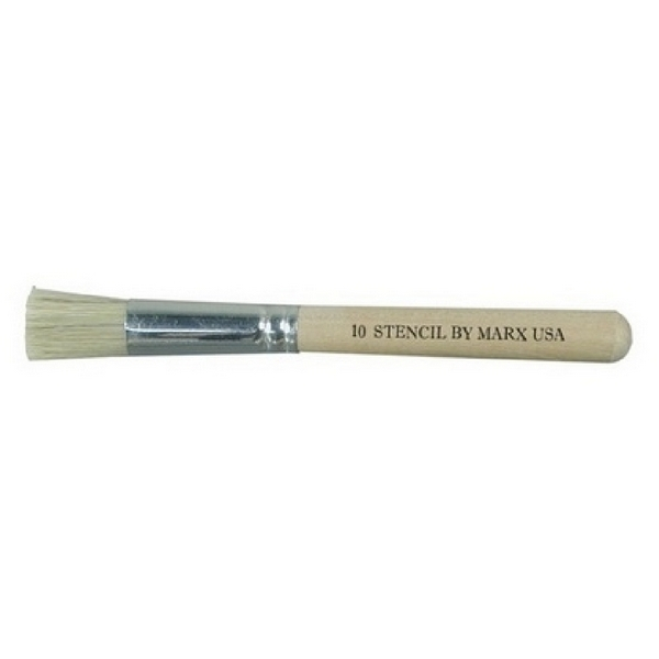 This hog bristle stencil brush is used for working with stencils and other marking applications. This versatile artist's brush has a corrosion-resistant nickel-plated ferrule and a hardwood handle. This size 10 brush has a 1-1/8" trim with a diameter of 0.680", and an overall length of 6-1/2". Naturally stiff hog bristles are strong yet springy and have natural split-ends which make them great for loading paint. Ideal for use with oils and acrylics.