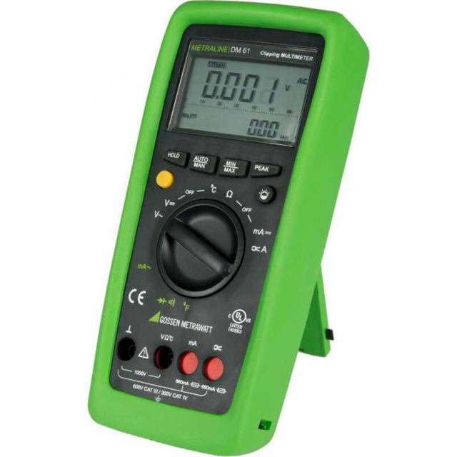 The digital multimeter with clip function for current transformer clamps and outstanding value for the money. Time-tested Gossen Metrawatt reliability and safety. Reliable measurement results in measuring categories CAT IV 300 V and CAT III 600 V with additional safety for the user and the instrument thanks to automatic blocking sockets (ABS). The robust METRALINE DM61 digital multimeter offers a great variety of convincing performance features. It's equipped with state-of-the-art technology and it assures precision measurement results. The extremely compact and ergonomic design provides for maximized ease of use and safety. Thanks to a broad range of functions, it's universally suitable for demanding measuring tasks in a great variety of applications.