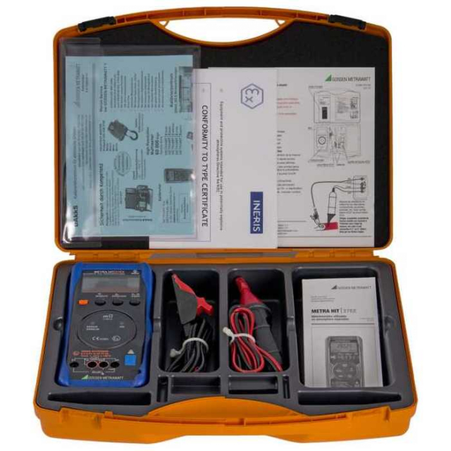 The M227G Metrahit EX is a compact milliohmmeter for the measurement of low value contact resistance (Ground Bond) in potentially explosive atmospheres. For example, the contacts inside aircraft fuel tanks, or on aircraft outer skins (lightning protection and wick test). This instrument can also be used for general low value resistance measurements inside and outside of potentially explosive atmospheres.