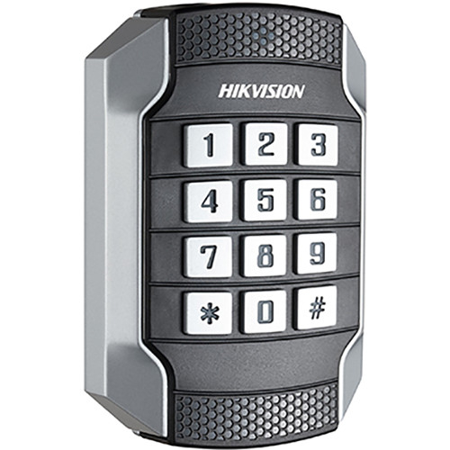 The DS-K1104MK Mifare Reader & Keypad from Hikvision is designed to read Mifare contactless smart cards. Additionally, it's equipped with a keypad for an additional layer of secure access control. This card reader offers a tamper-resistant alarm. It is IP65- and IK10-rated, making it suitable for use in an outdoor area that is at risk of vandalism.