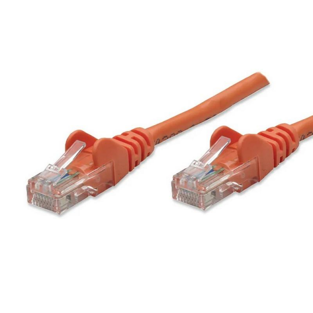 RJ-45 Male / RJ-45 Male, 14 ft. (5.0 m), Orange. RJ-45 with gold plated contacts, unique PVC jacket and snag free boots.