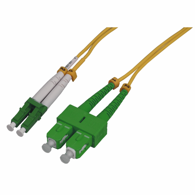 Intellinet, 752459, 1 m LC to SC APC Fiber Optic Patch Cable, 2.0 mm, Duplex, OFNR, Singlemode BIF, Yellow
