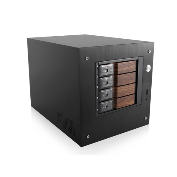 iStarUSA, S-35-DE4WB, Compact Stylish 4x 3.5" Hotswap Trayless mini-ITX Tower Wood Look Bezel