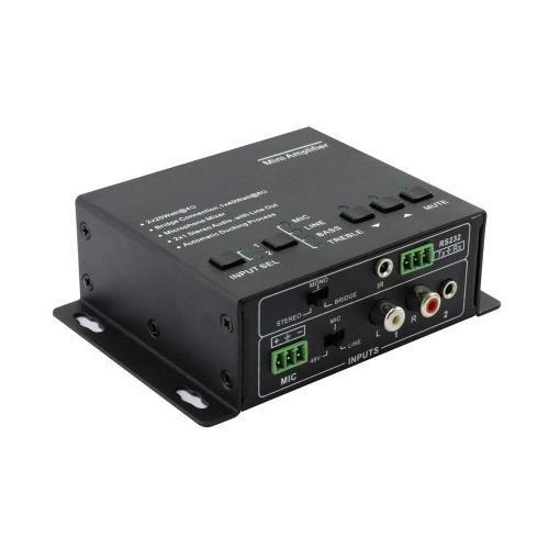 The KanexPro Mini Audio Amplifier is a quarter-rack width digital amplifier (Class D) with equalizer control and Mic mixer. It's a simple yet powerful device delivering 2x20 Watts 4Ohm default output with built-in volume/ bass feature. It also supports dual mono-output with 2 stereo audio selectable inputs. The Microphone mixer includes independent volume control with balance switching. Supports balanced/ unbalanced signals. This Mini Audio Amplifier is mainly used during lectures, house of worship centers and various musical events where mic mixing together with equalizing audio is critical.