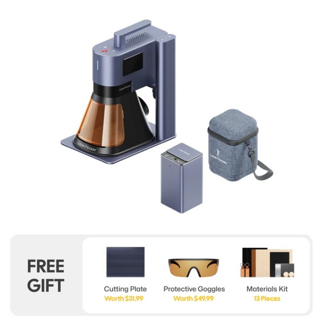 From personalized gifts to metalwork, the LP5 adapts to your craft. Whether in a studio, workshop, or on the go, it fits seamlessly into your workflow. Industry's smallest 2-in-1 laser engraver with 20W fiber and 20W diode laser sources,versatile for engraving on almost all materials. 20W Fiber Laser: Stainless steel, aluminum, brass, silver, plastic, platinum, titanium, gold, and so on. 20W Diode Laser: Wood, acrylic, leather, glass, rock, paper, rubber, food, and so on. Achieve greater depth in a single path with clean, well-defined edges, and exceptional details. Experience LaserPecker's software expertise and precision control for captivating grayscale engravings on wood, rocks, and metals. Rather than limiting oneself to monochrome designs, the journey of experimenting with color engraving can inspire your craftsmanship. LP5 offers precise control over cutting angles and geometry, surpassing traditional lasers, and cuts up to 1mm of brass, stainless steel, aluminum, and titanium sheets. The LP5 is the most capable, lightest weight, and most compact engraver in its class, and its ease of portability makes it an ideal companion for versatile and on-the-go customization. With LP5, the possibilities for your projects are no longer limited by location or access to a stationary setup. Whether working on-site, in your workshop, or even outdoors, this compact and portable laser engraver allows you to create in the places that inspire you most. The LP5 provides second to none engraving speed with its glavo technology, finishing 400 redwine glasses in 22 hours. Effortlessly manage high-volume production during peak periods of urgency with the Slide Extension, enhancing both efficiency and speed. Personalize cylindrical objects like tumblers, mug cups, glasses, bracelets, and rings with precision using the Rotary Extension. Say goodbye to manual adjustments. Variable Text streamlines batch production, effortlessly engraving elements like serial numbers, dates, or personalized messages into designs. Redundant safety mechanisms deliver comprehensive control and ensure your engraving workspace stays secure.Simplify your engraving workflow with integrated camera feature. Housed within a safety enclosure, the camera helps you pinpoint the perfect position and automatically fills your materials when you align them uniformly. Let the function handle the details, ensuring enhanced accuracy and efficiency. Powerful yet intuitive PC software and mobile app - LaserPecker Design Space, give you complete command over the engraving jobs for an easy, efficient experience. Achieve perfect engraving with the dual red dots focusing and direct safe preview options.