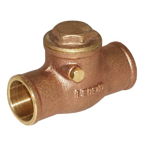 3/4" No Lead Brass Swing Check Valve. Durable, Full-pattern cast brass body. Large, integral seat and disc sealing surfaces. Forged brass hinge pin assures smooth, non-binding disc operation. T-pattern body permits either vertical (upward flow only) or horizontal (assembly cap upright) installations.